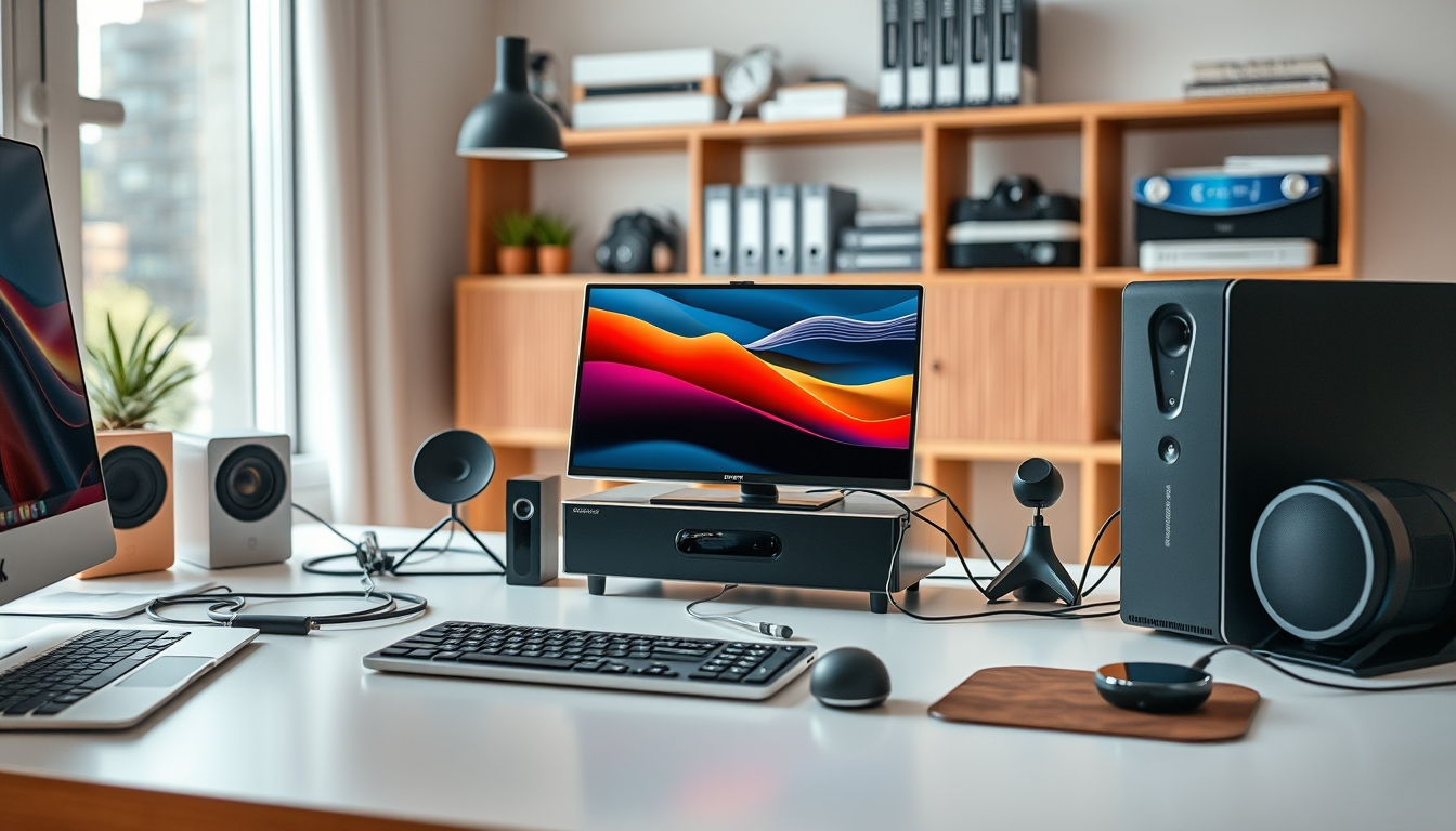 Skvělou volbou je ergonomická klávesnice, monitor s vysokým rozlišením nebo chytrý reproduktor pro efektivnější práci a pohodlí.